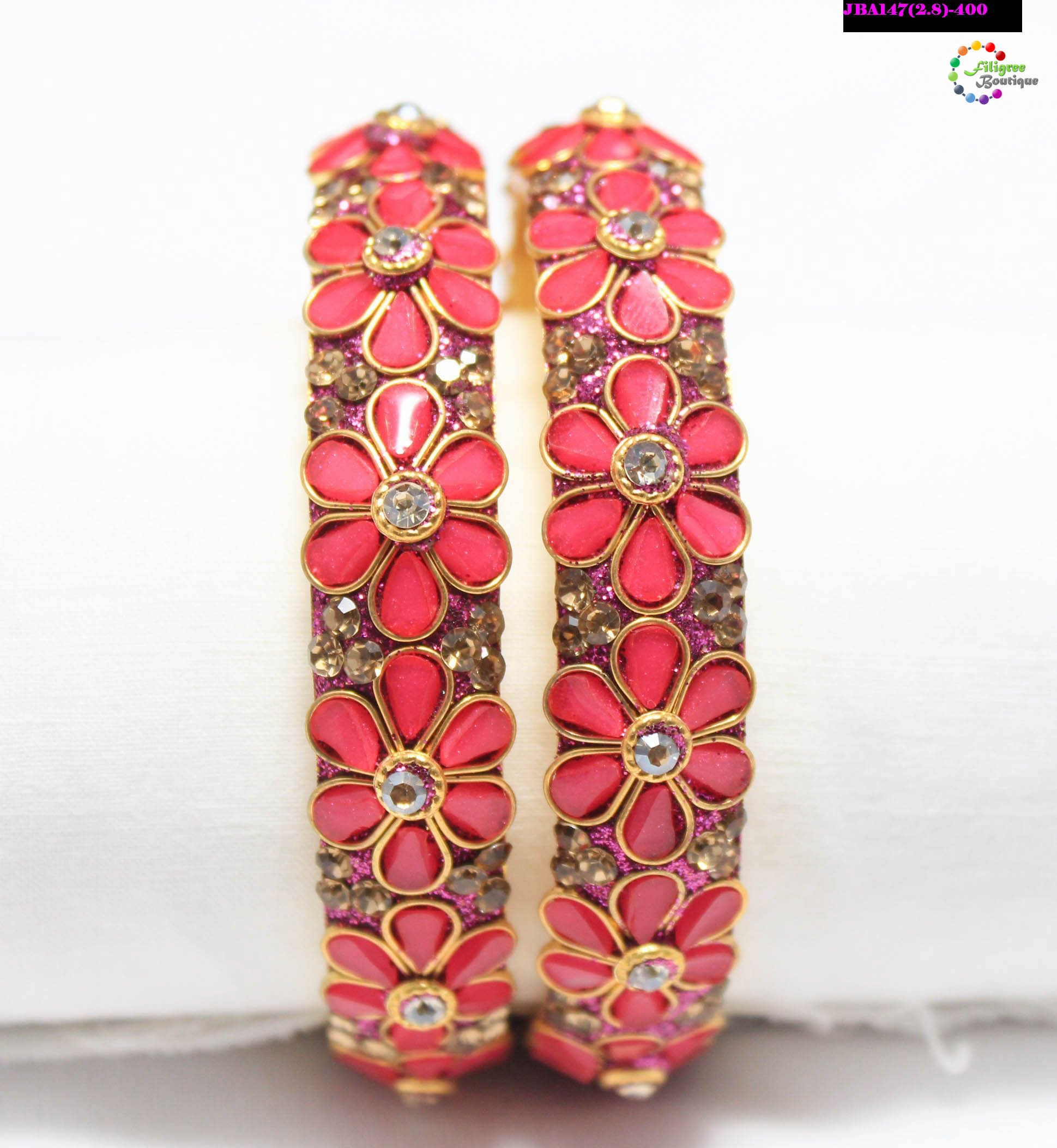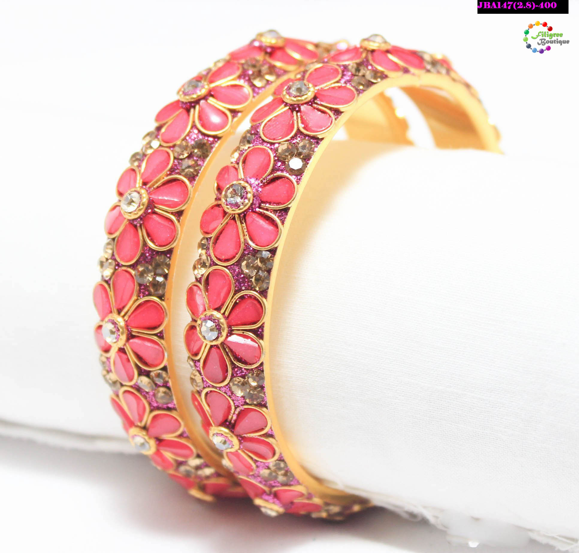 Brass Fancy Handmade Designer Bangle With PinkStone-2.8 2 Piece in a pack