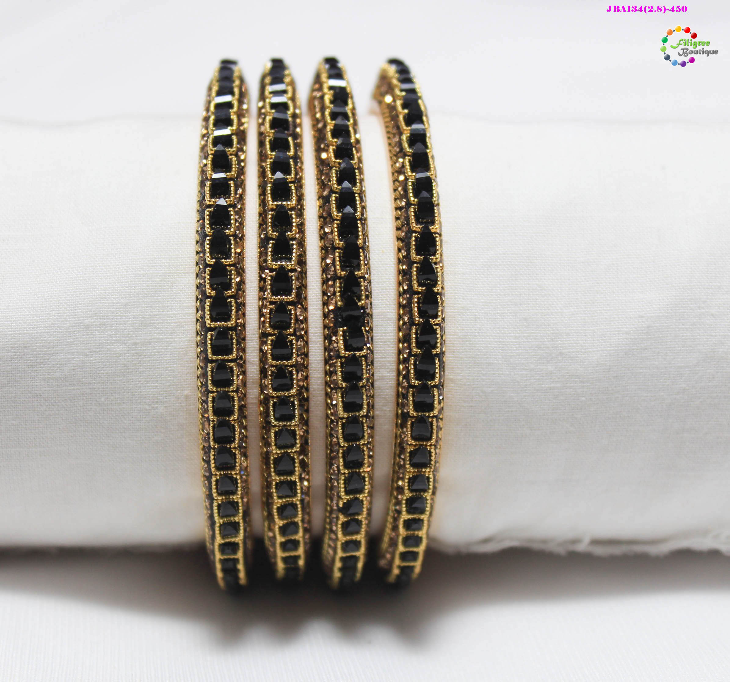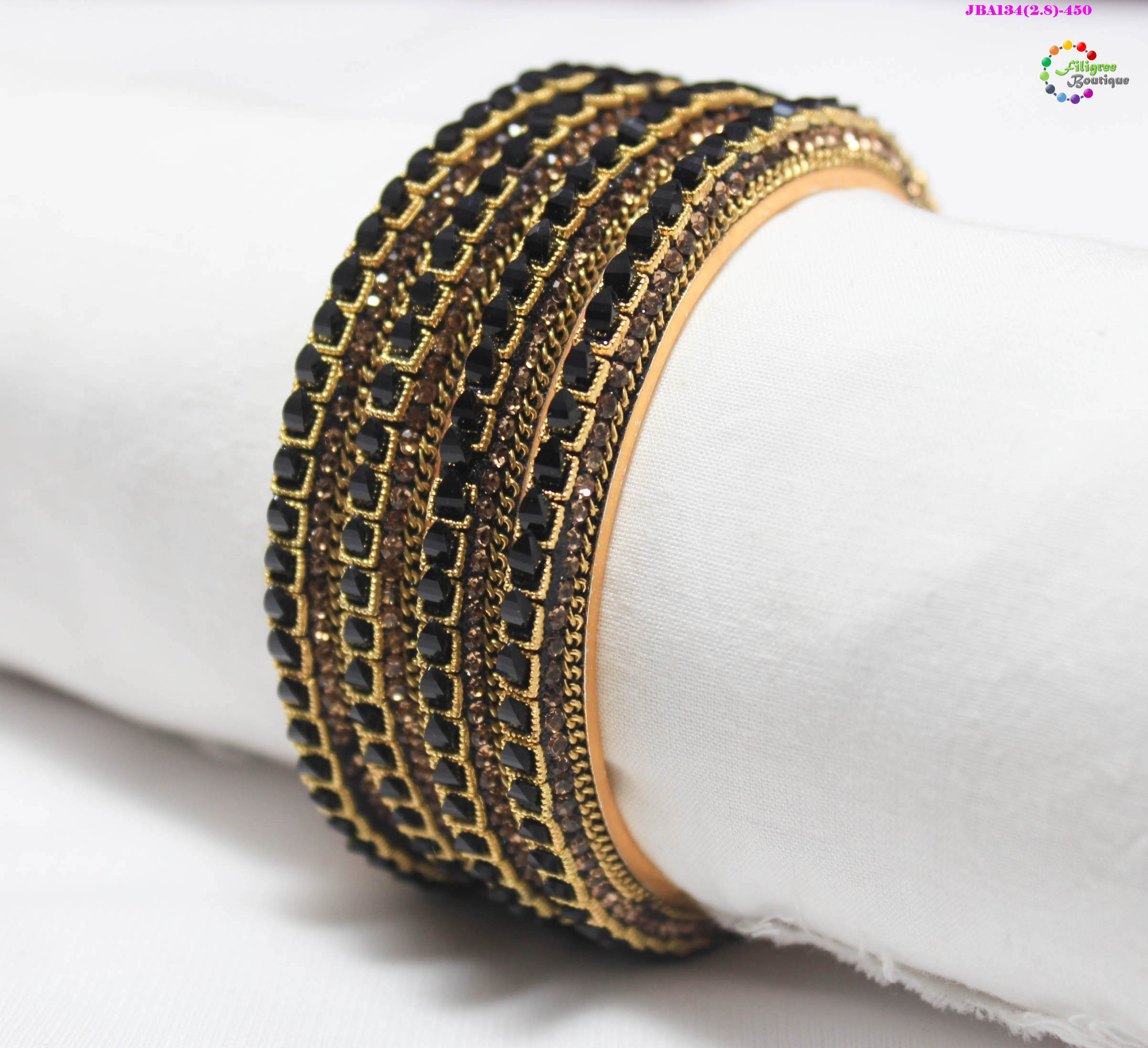 Brass Fancy Handmade Designer Bangle With Black Stone-2.8 4 Piece in a pack