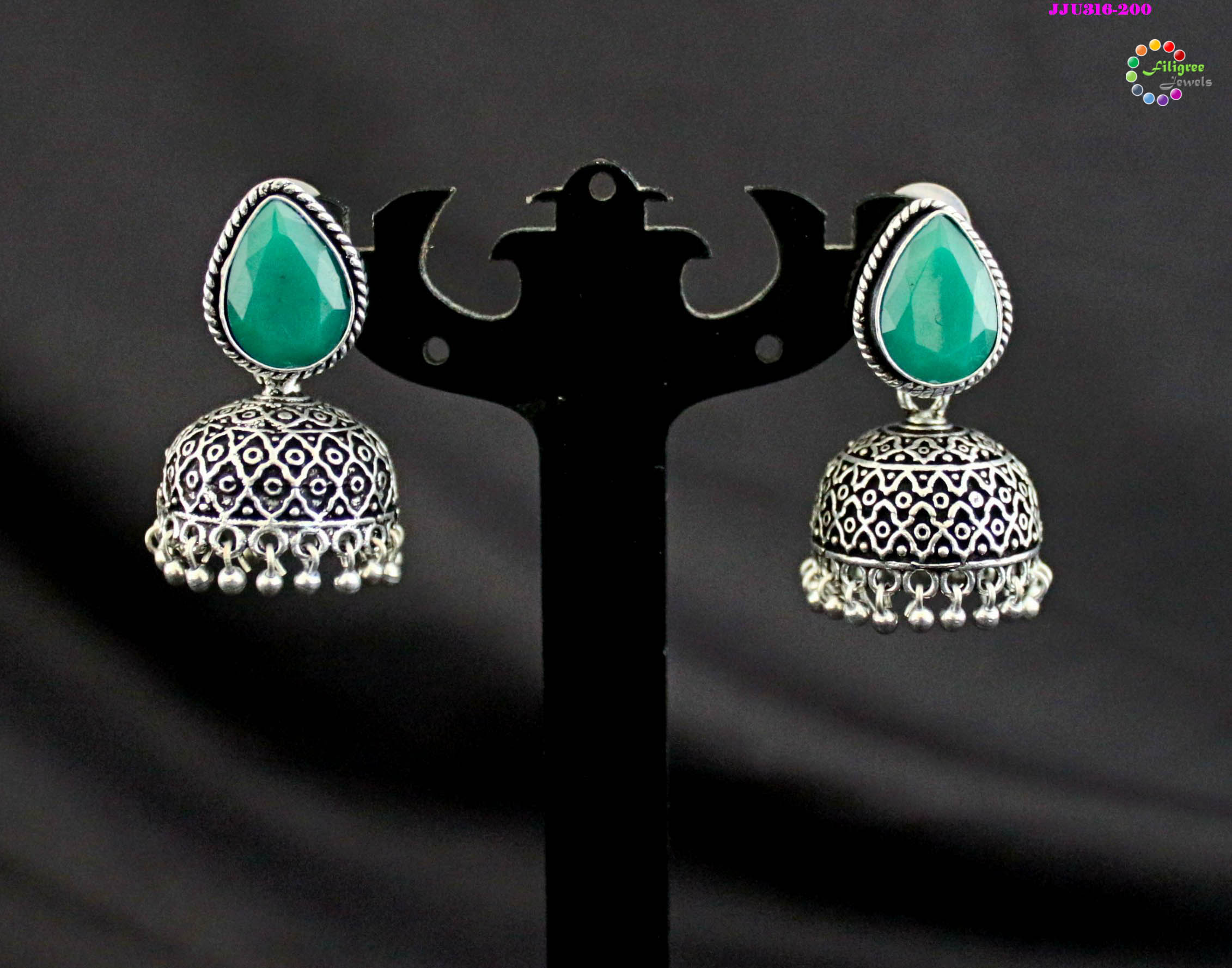 Oxidised Jumkha With Dark Green Stone
