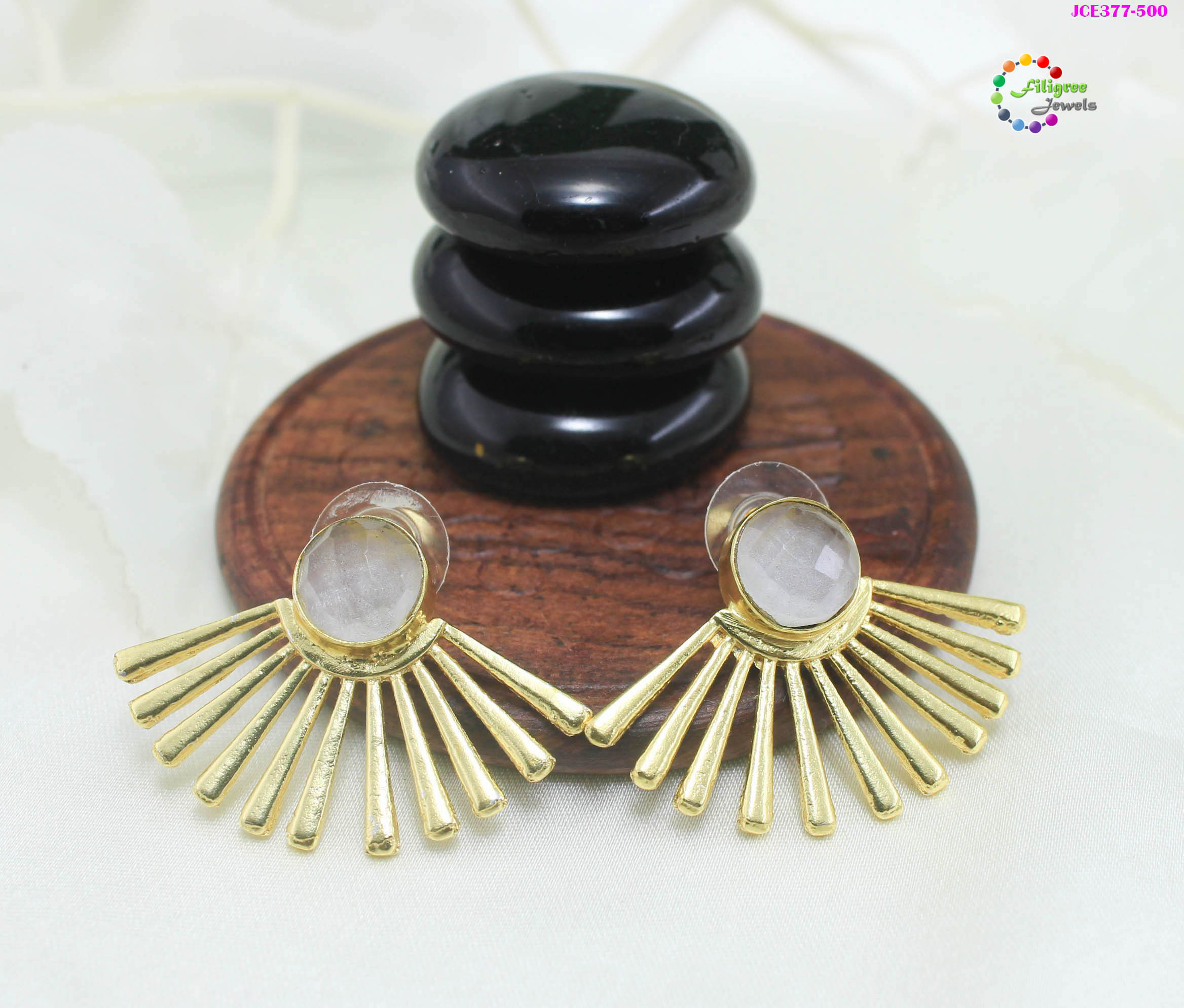 Premium Brass Ear Stud with Monolisa Stone Size: 25x40mm 1 Pair in a pack Please Note: Color may slightly vary due to different display device