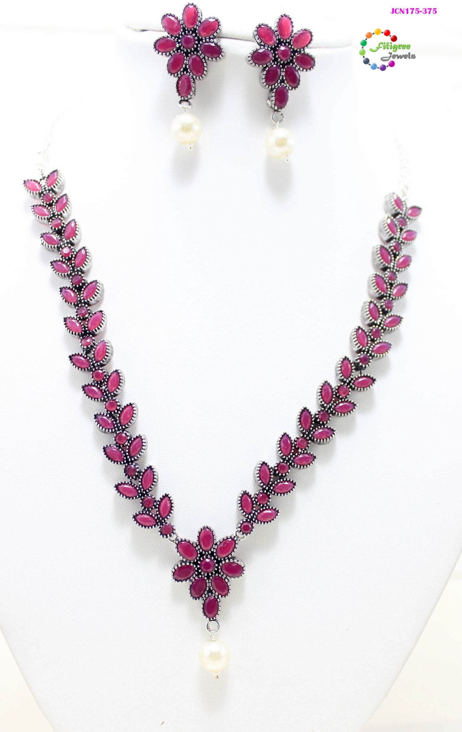 Oxidised Choker Pink Stone 1 Piece in a Pack