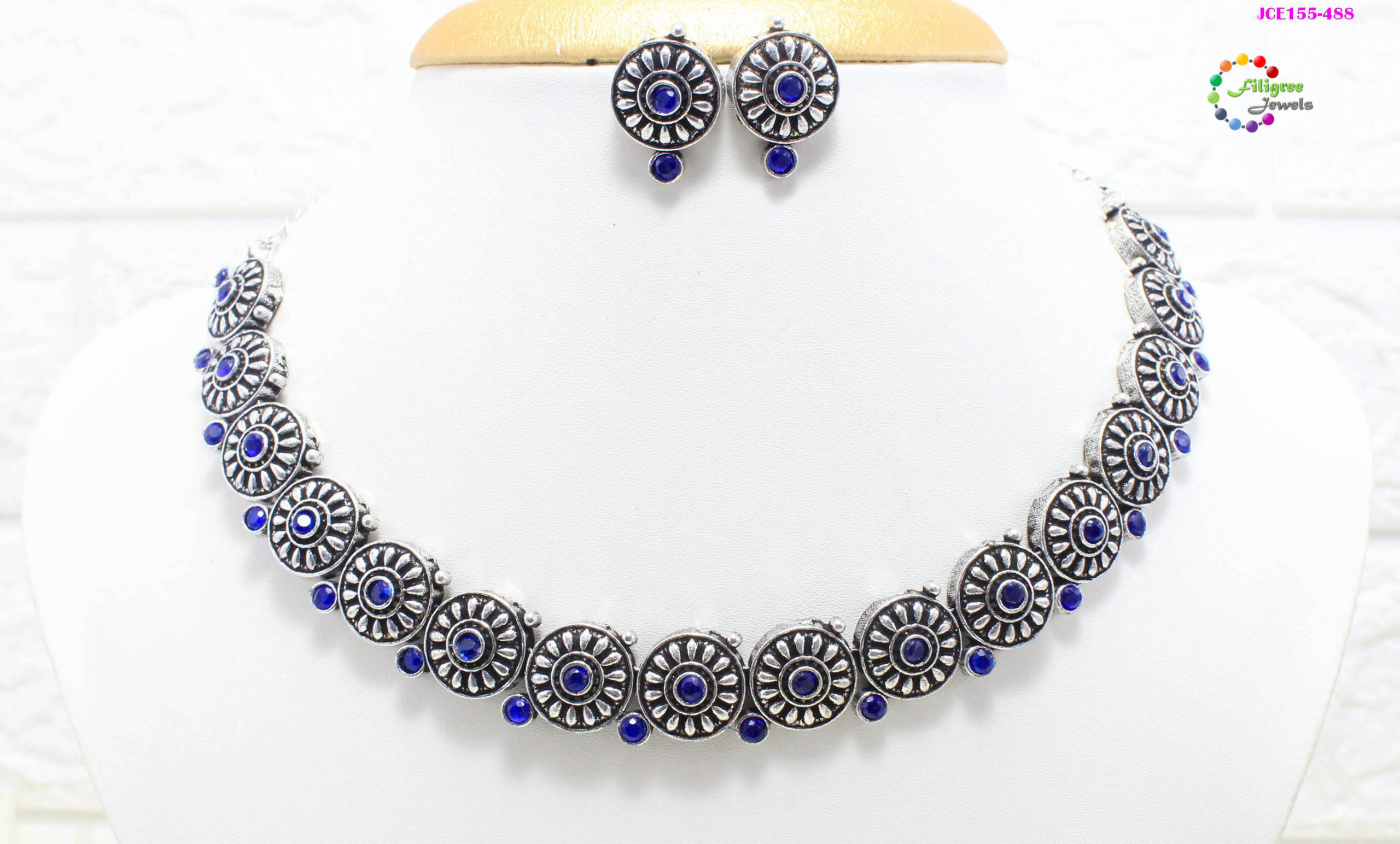 Oxidised Choker Dark Blue Stone 1 Piece in a Pack